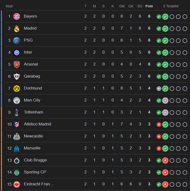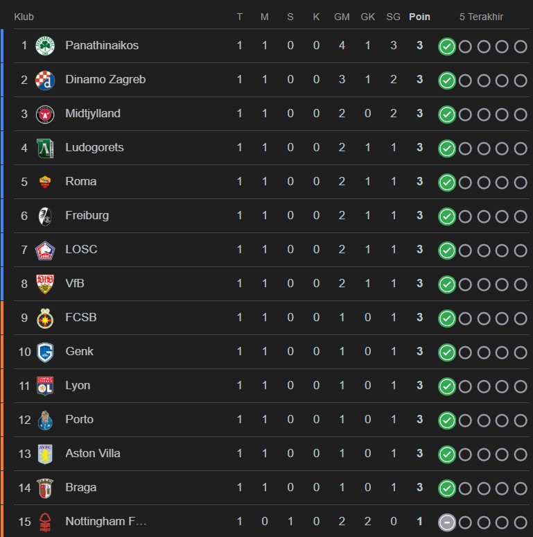 Jadwal Bola dan Klasemen Awal Pekan Ini